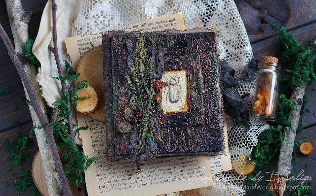 Например, про этот альбом, который изначально мне хотелось сделать в классическом винтажном стиле, но при раскладке страниц они показались мне слишком мрачными и скучноватыми, поэтому я решила разнообразить слои бумагой и кружевами светлых оттенков. И это оказалось очень удачным решением - слои заиграли и альбом получился "живым"!