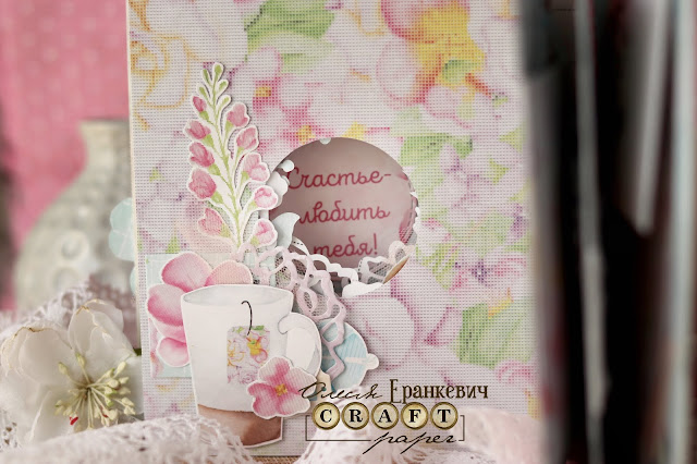 Идея туннеля осенила меня как только я увидела коллекцию «Цветочная вышивка», минималистичную в плане сложного декора, но очень нежную. Листы скрапбумаги больше похожи на фоновые и я решила задать основную конструктивную идею в виде туннеля и расставить акценты с помощью вырезанных цветочных элементов.