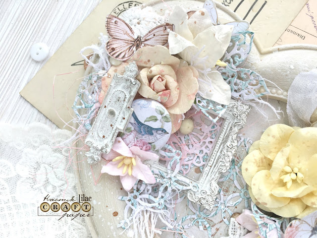 Поверх добавила бумажные салфеточки. А на саму раму - элементы кружев, в тех местах, где планирую разместить основные части композиции.